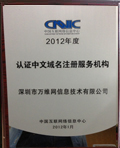 ![]() 中国互联网络信息中心 认证 中文域名2012年度顶级注册商 |
