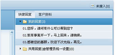 员工可设置部分常用的回复用语、礼貌用语等作为快捷回复语。使员工与客户的沟通更快捷、更高效。 ![]() 快速回复功能除了员工自行设置快捷回复语之外,还支持快速回复内容的共享,每个工号都可以在"我的回复"区域里右键点击,将自己的快速回复内容复制到共享回复中,便于其他工号在答复咨询时使用。 ![]() 客户资料:记录来访客户详细资料